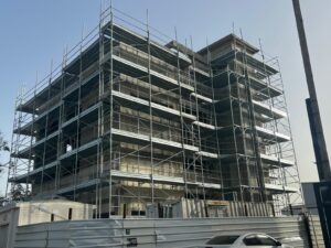 פיגום חזית לבניין בתל אביב במסגרת שדרוג ושיפוץ הבניין